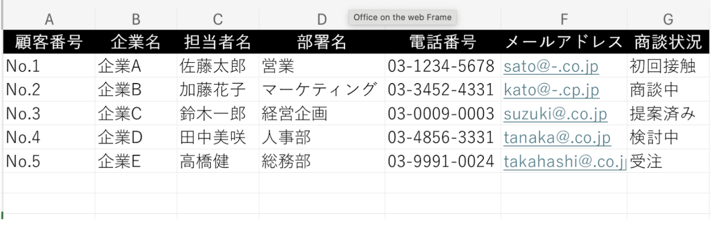 続いては、表計算ソフトを活用し、顧客データをリスト化する方法です。